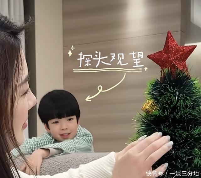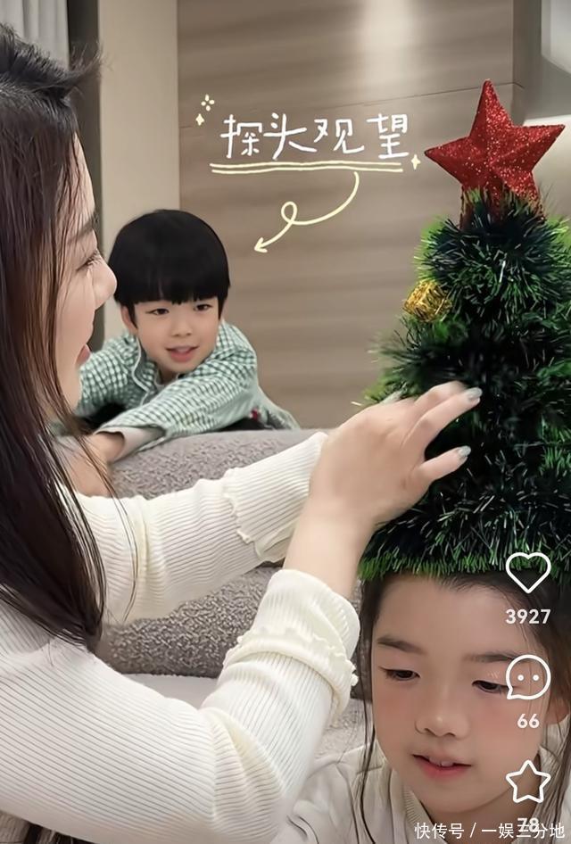 当吴雅婷为唯伊的“圣诞树发型”装上红色星星顶饰时,7岁的儿子弟弟穿着绿白格子衬衫,悄悄从沙发后探出头张望,画面里标注的“探头观望”字样让这一幕更添童趣。弟弟圆圆的脸蛋、灵动的眉眼,和姐姐唯伊一样,都完美复刻了爸爸王栎鑫的五官轮廓,网友忍不住调侃“王栎鑫的基因也太强大了,姐弟俩和爸爸像复制粘贴的一样”。