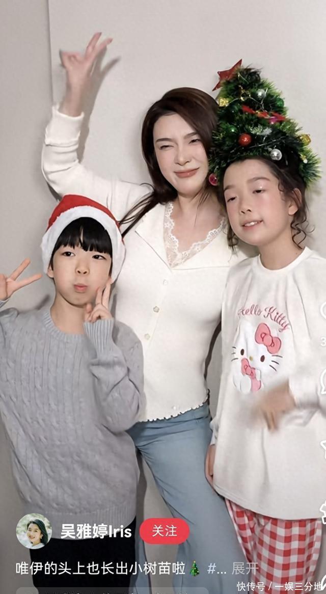 而吴雅婷站在儿女中间,一手搭着女儿的肩、一手揽着儿子,三人同框的画面温馨又治愈,能看出孩子们在妈妈的照顾下,性格都格外开朗阳光。