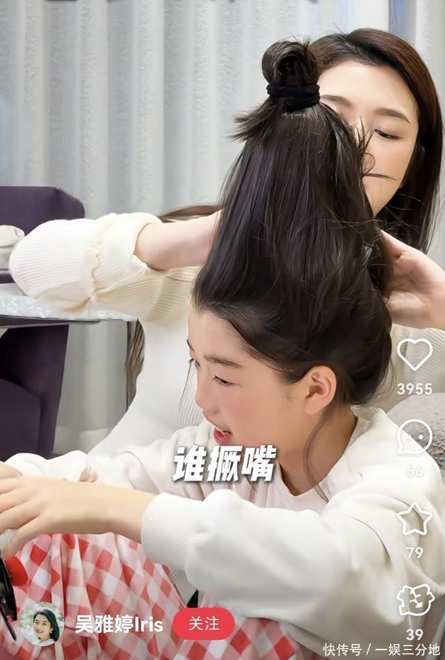 镜头中,吴雅婷身着米白色针织上衣,简约的款式搭配温柔的色系,衬得她气质温婉,全程笑意盈盈地为女儿打理发型,母爱感拉满。