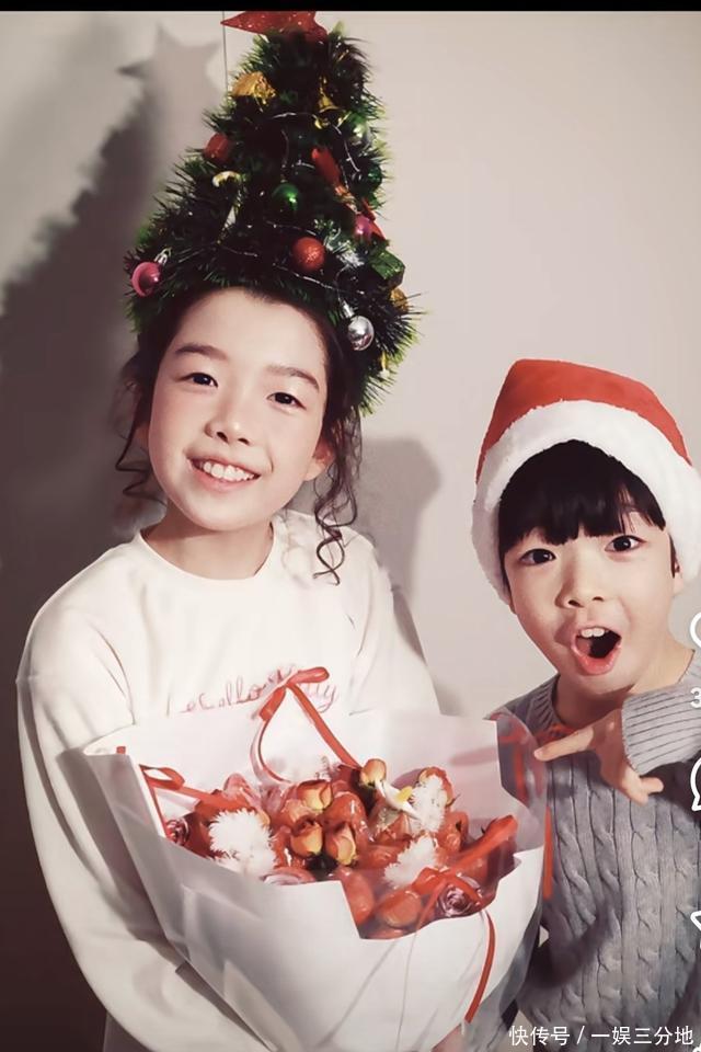 随后的合照里,弟弟戴上红色圣诞帽,对着镜头比出搞怪手势,唯伊则手捧花束笑得灿烂,姐弟俩一静一动的反差萌,让画面充满欢乐。